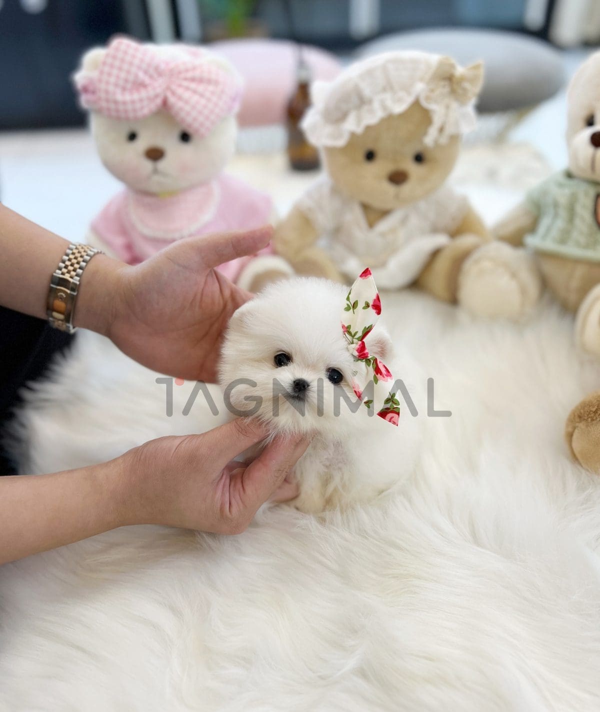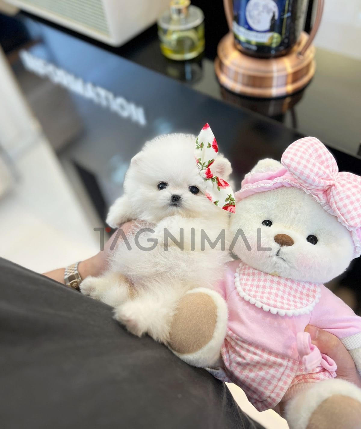 The little Korean pomeranian baby girl with super fluffy white fur and a tiny Teacup size is now ready for a new loving home ❤️