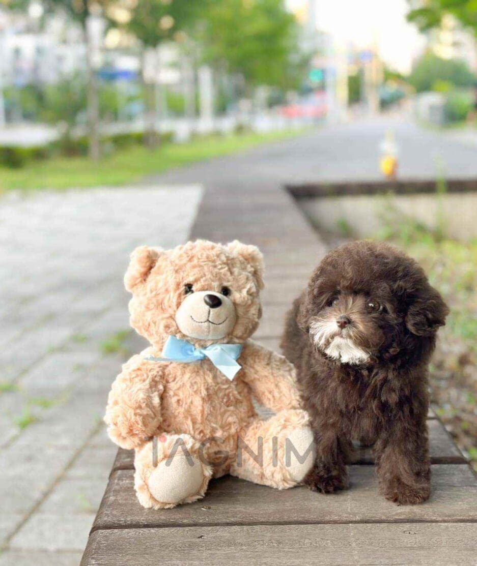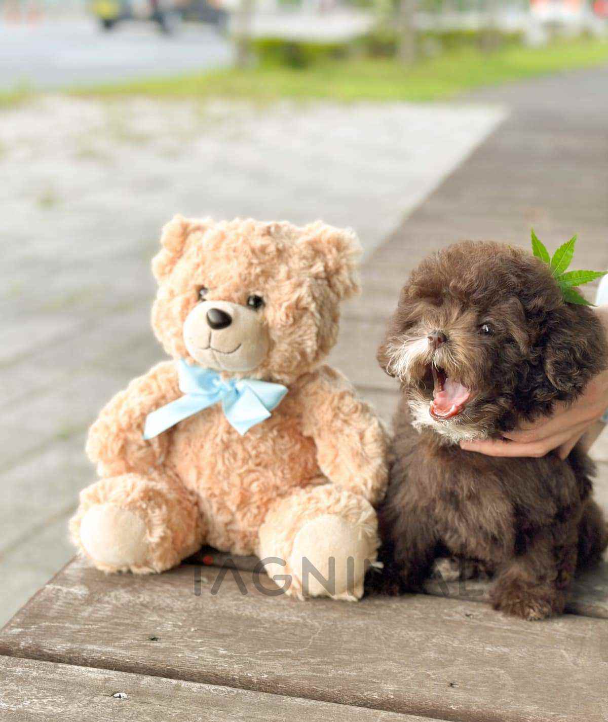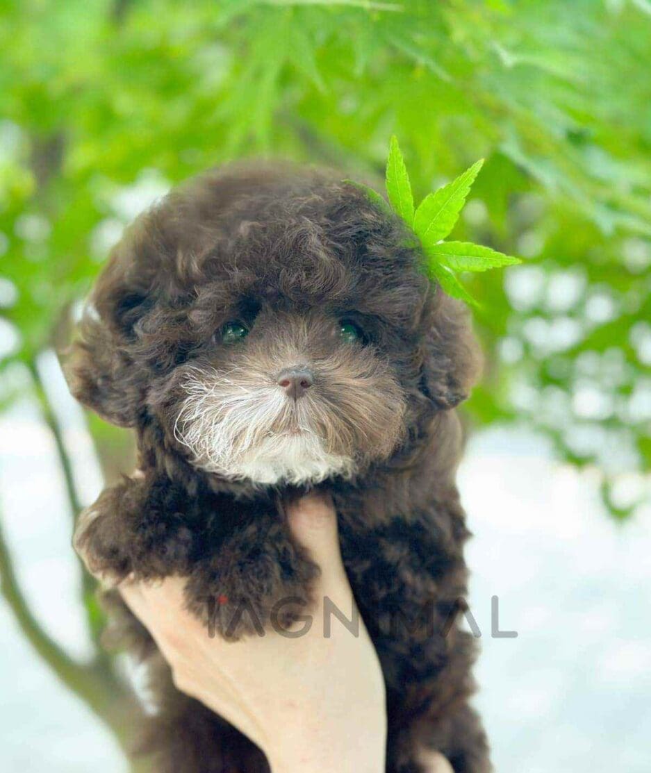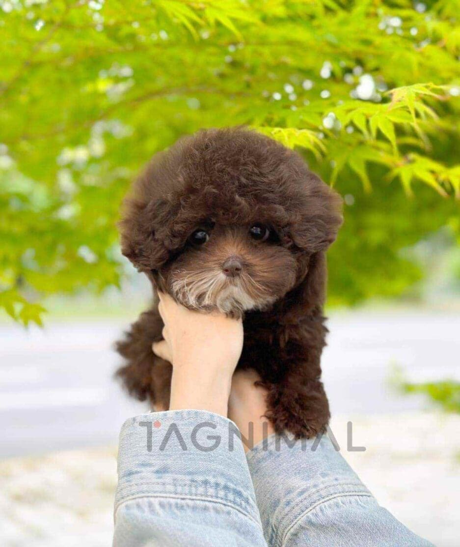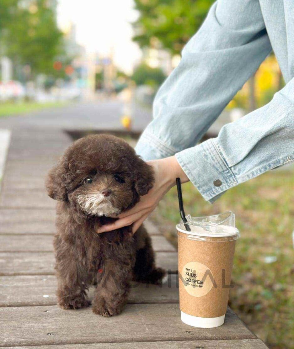 The little Korean poodle baby girl with beautiful curly Choco Tan fur, a cute little face, Premium quality, and Teacup size is now ready for a new loving home ❤️
