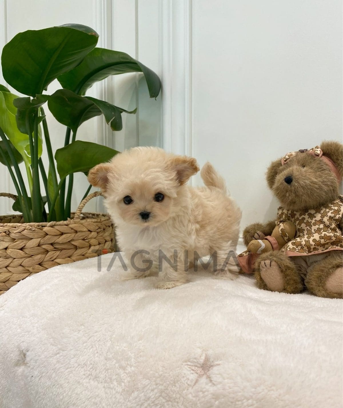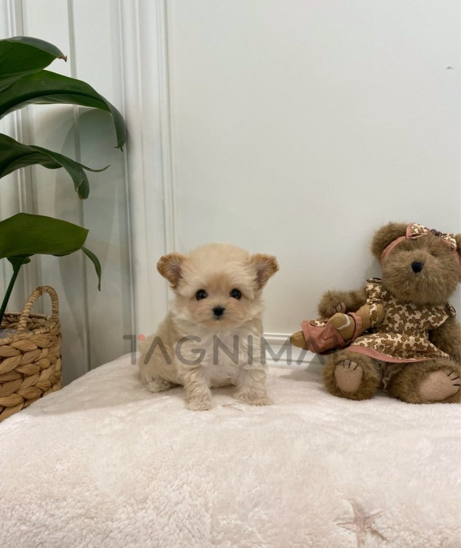 The little Korean Maltipoo baby girl with sweet looks, super fluffy cream brown fur, and a tiny mini size is now ready for a new loving home ❤️