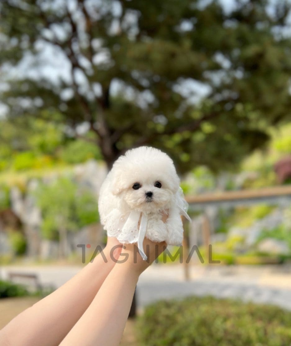 The little Korean Bichon Frise baby boy with sweet looks, super fluffy white fur, and a tiny mini size is now ready for a new loving home ❤️