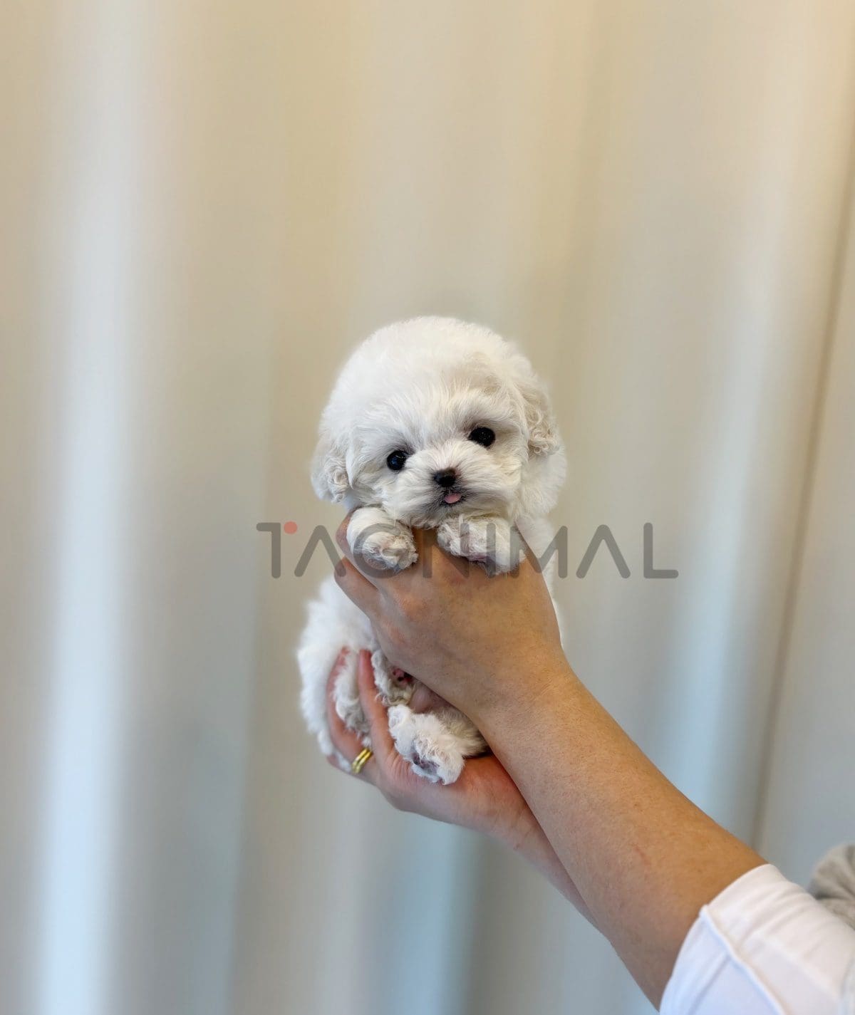 The little Korean Bichon Frise baby boy with sweet looks, super fluffy white fur, and a tiny teacup size is now ready for a new loving home ❤️
