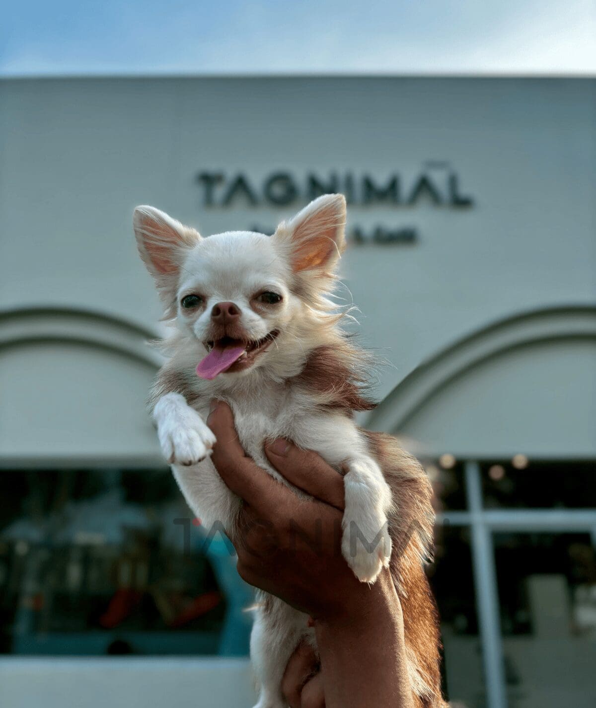 หนุ่มน้อยชิวาว่าตัวน้อย ขนสีน้ำตาล ขาว สวยพิเศษมากๆ แล้วมาร์คกิ้งน้องก็เป๊ะสุดๆ แถมน้องไซส์ทีคัพ จิ๋วกำลังพอดีสุดๆค่า หัวใจยังว่าง รอพี่ๆ มารับกลับบ้านนะคะ ❤️