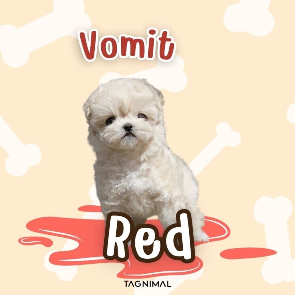 Red vomit should always be taken seriously. It could be caused by stomach ulcers or from excessive, forceful vomiting that tears blood vessels in the esophagus. This needs immediate attention from a veterinarian.